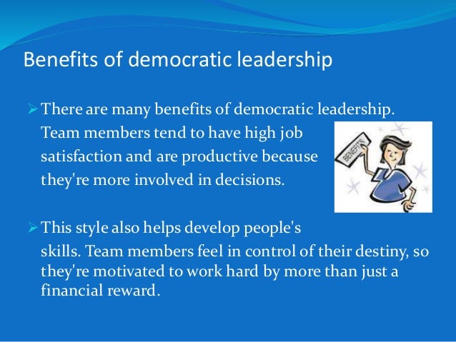 This advantage makes it possible for the individual relationships on the team to experience an increase in admiration and trust, which then enhances all of the other benefits that come with the democratic style.